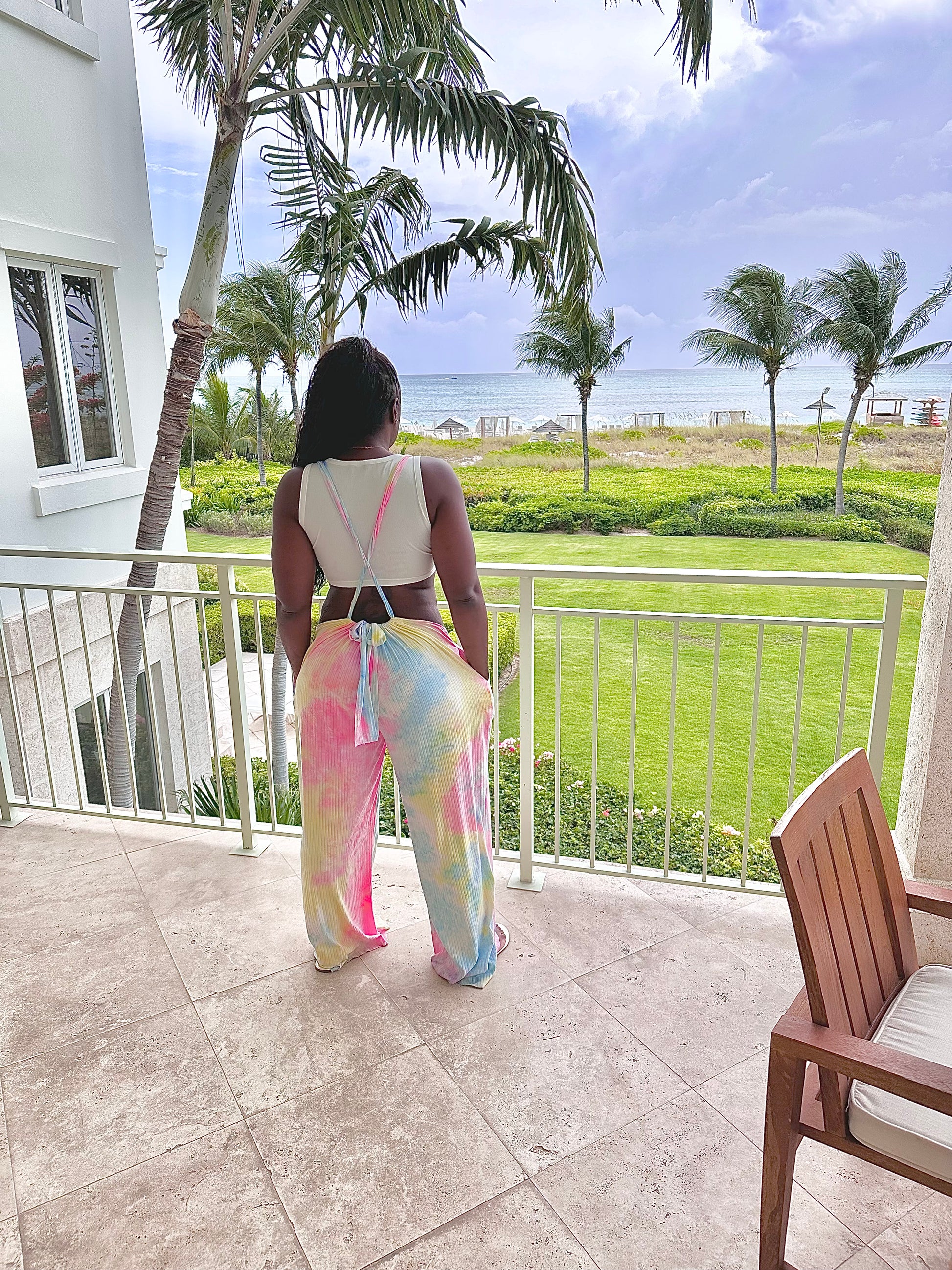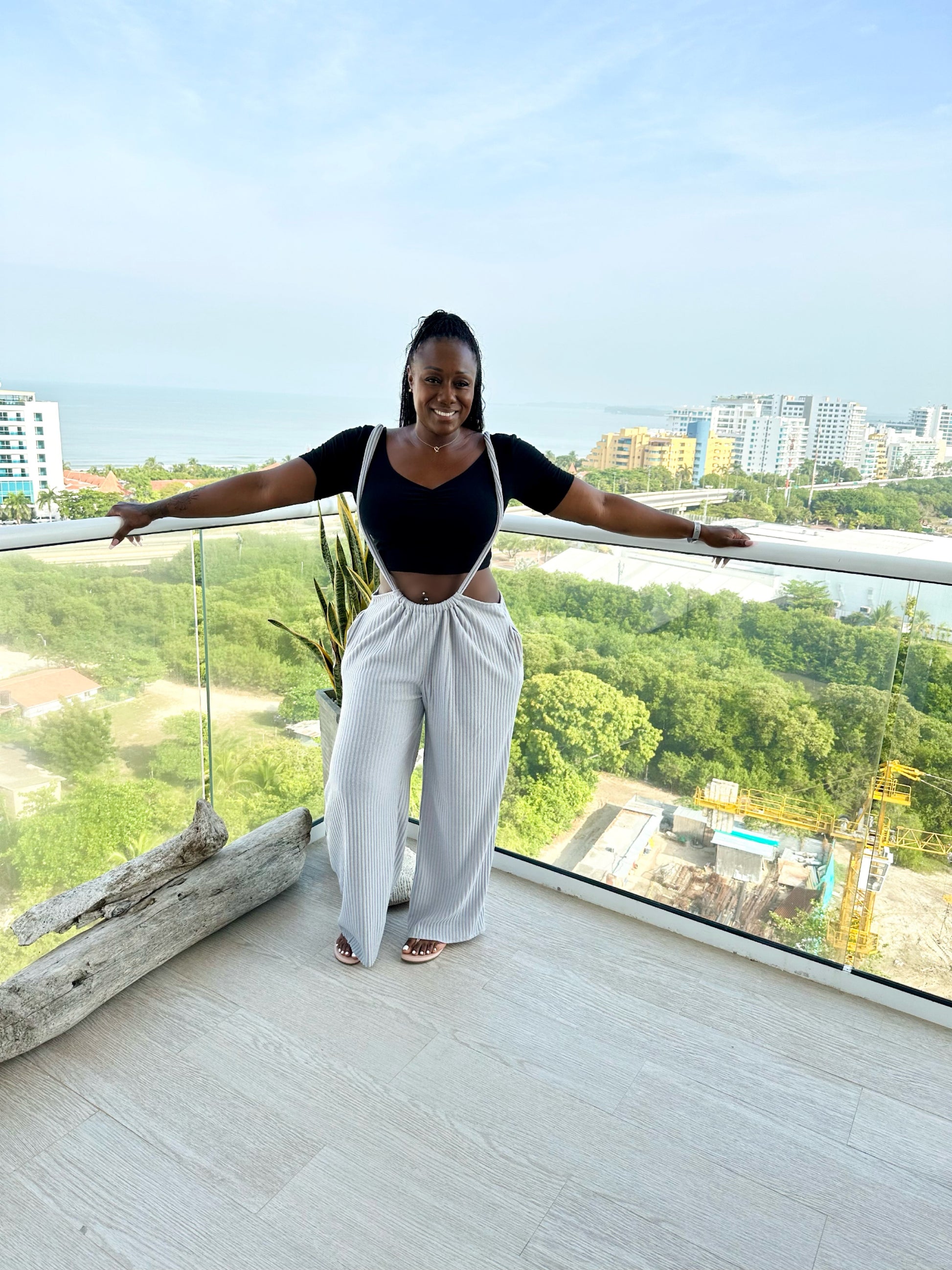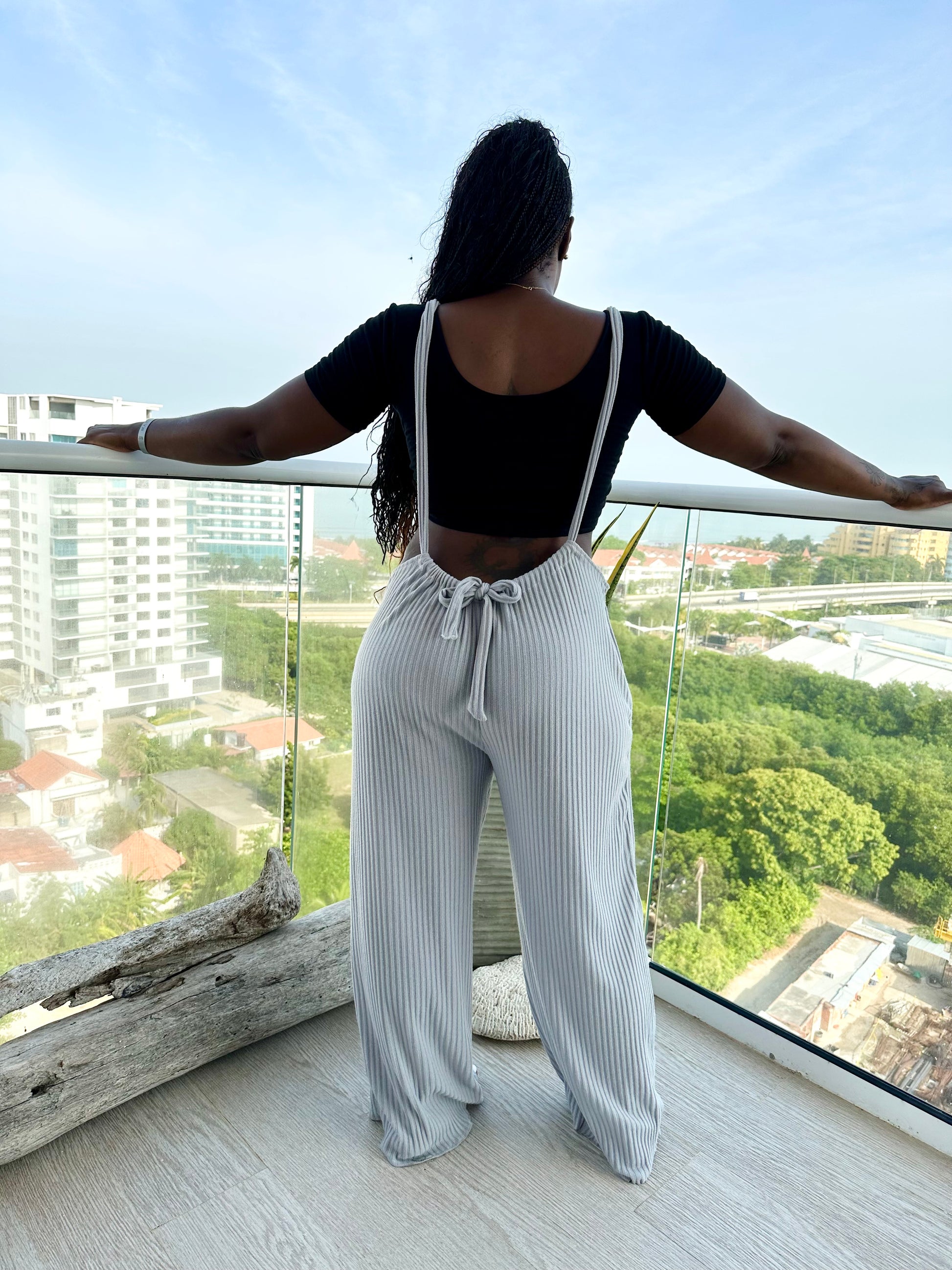 The fabric is knit 4 west stretch fabric. The model is wearing a LARGE. This is an over-size comfy piece. This is also a “Made-to-order” item. Please allow two weeks for shipping on all made to order items.
